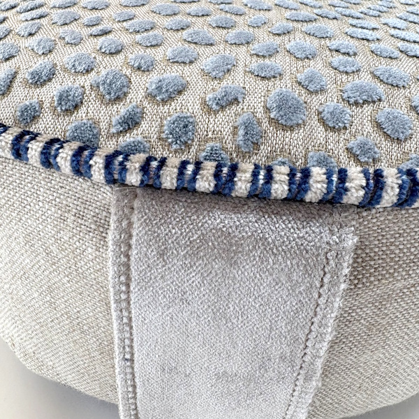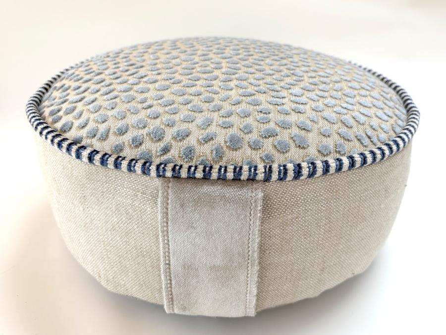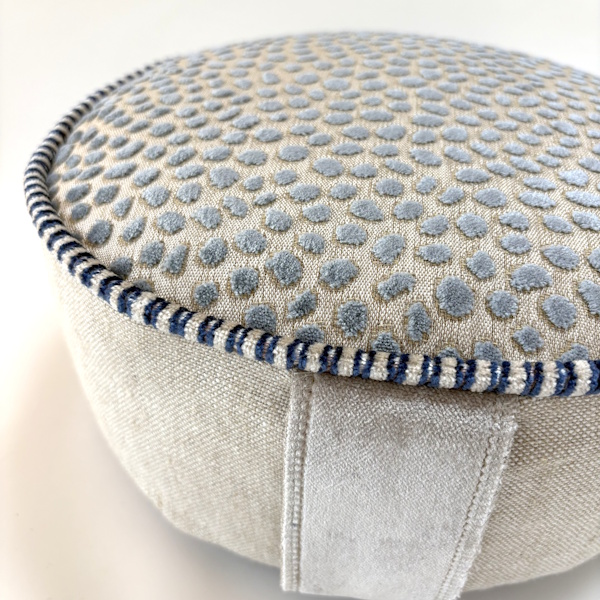 Meditatiekussen met velours top en bies. Zijkant van linnen en handvat van wollen fluweel.