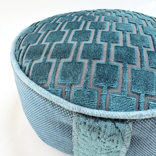 Meditatiekussen met velours top en handvat. Bies van wol en zijkant van stevige geweven poly.