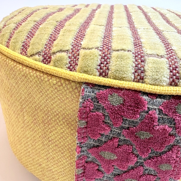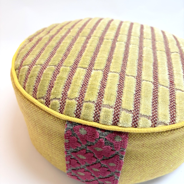 Meditatiekussen met een velours top, bies en handvat, zijkant van wol.