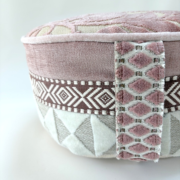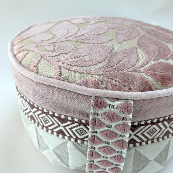 Meditatiekussen met velours top, bies, handvat en zijkant. Met extra decoratiebies.