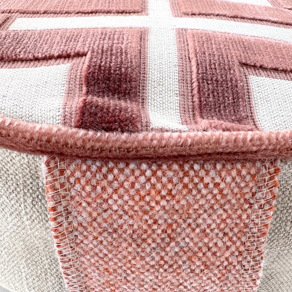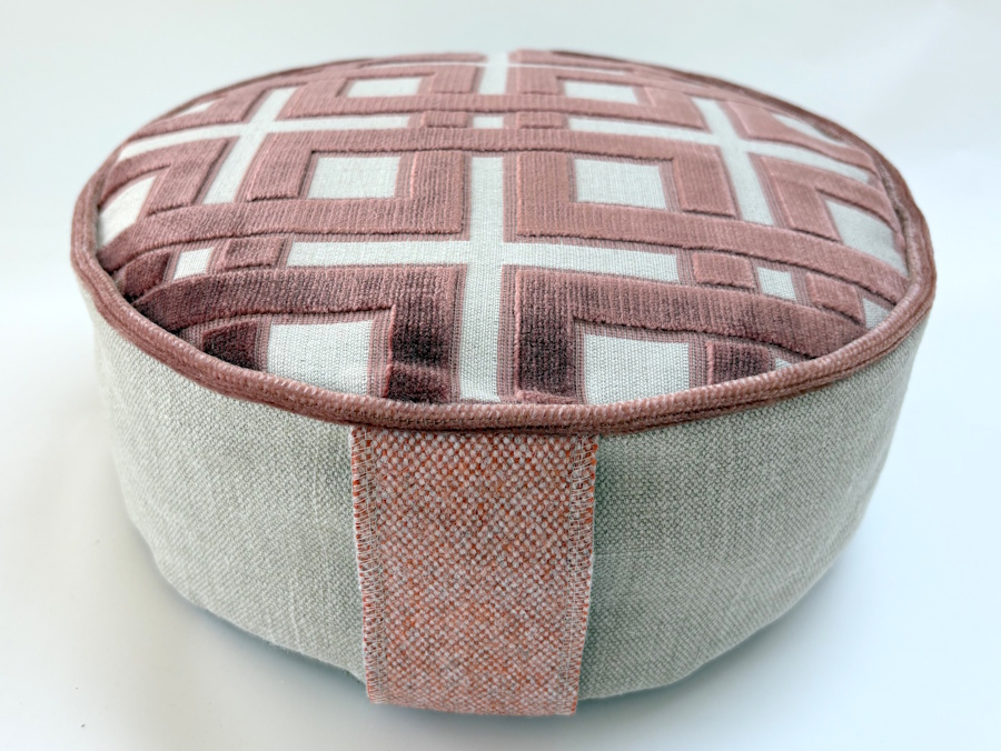 Meditatiekussen met velours top en bies, wollen handvat en linnen zijkant.